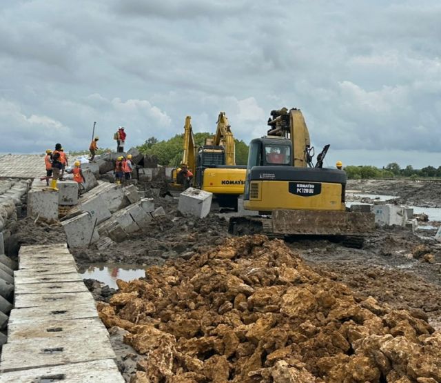 Bangkalan, Pusakanews, BBWS Brantas Melanjutkan Kembali Proyek Pembangunan Pengaman Pantai di Pantai Sepulu, Desa Prancak, Kecamatan Sepulu, Kabupaten Bangkalan. Proyek Tembok Laut/Sea Wall atau
